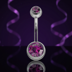 Klasyczny kolczyk do pępka z fioletowymi cyrkoniami