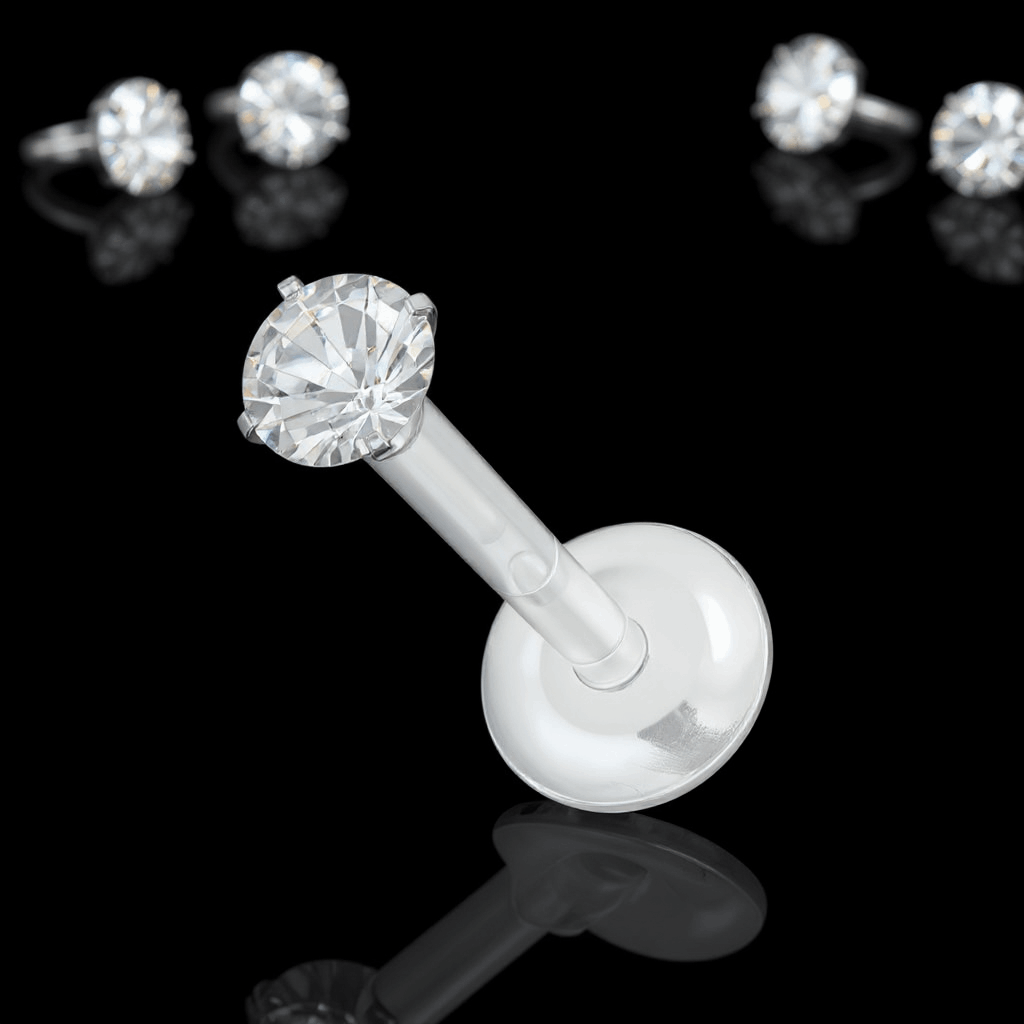 Labret z bioflexu z kryształkiem 3d