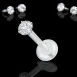 Przezroczysty labret z elastycznego bioflexu z płaskim dyskiem z białym kryształkiem. Ozdoba wtykana w elastyczny pręcik.
