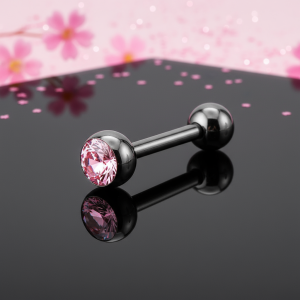Czarny kolczyk do języka sztanga z różową cyrkonią – odważny akcent z delikatnym błyskiem