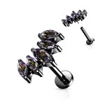 Czarny labret do ucha z pięcioma kryształkami Virtail Medium o kształcie markizy.