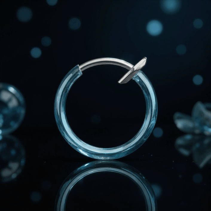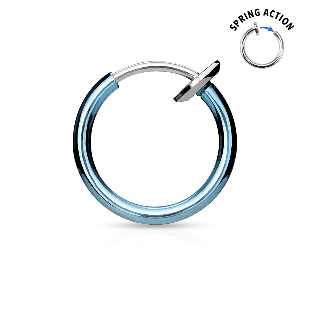 Chcesz dodać piercingowy akcent bez przekłuwania skóry? Fejk kółeczko w kolorze błękitnym to idealne rozwiązanie! Dzięki sprężynującemu zapięciu łatwo je założysz i zdejmiesz, a jego wygląd nie różni się od prawdziwego kolczyka.