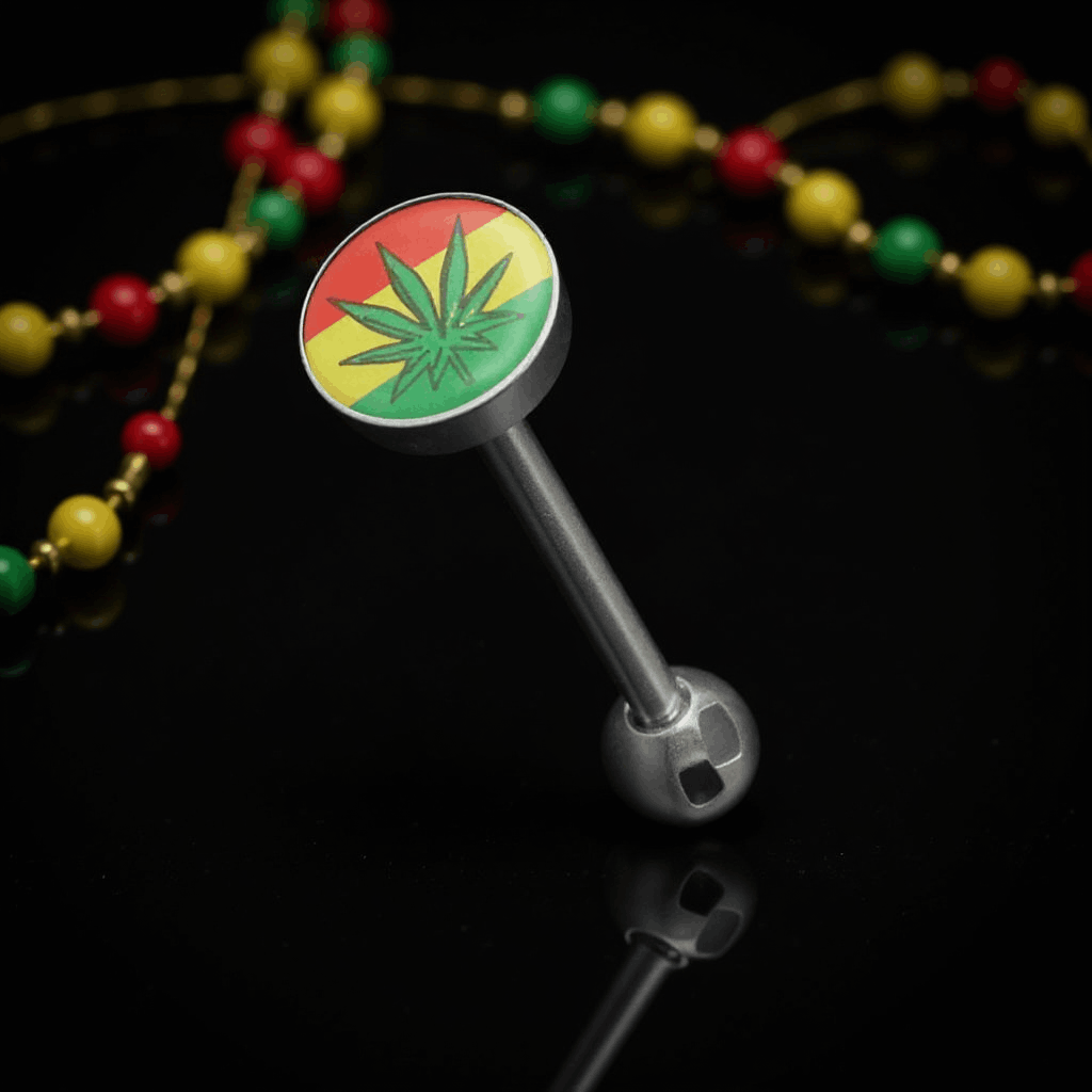 Dysk zabezpieczony żywicą epoksydowaną, dzięki czemu powierzchnia kolczyka jest gładka i nie drażni języka ani podniebienia.