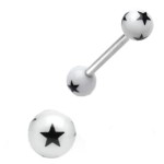 Sztanga do języka z białymi akrylowymi kuleczkami w czarne gwiazdy