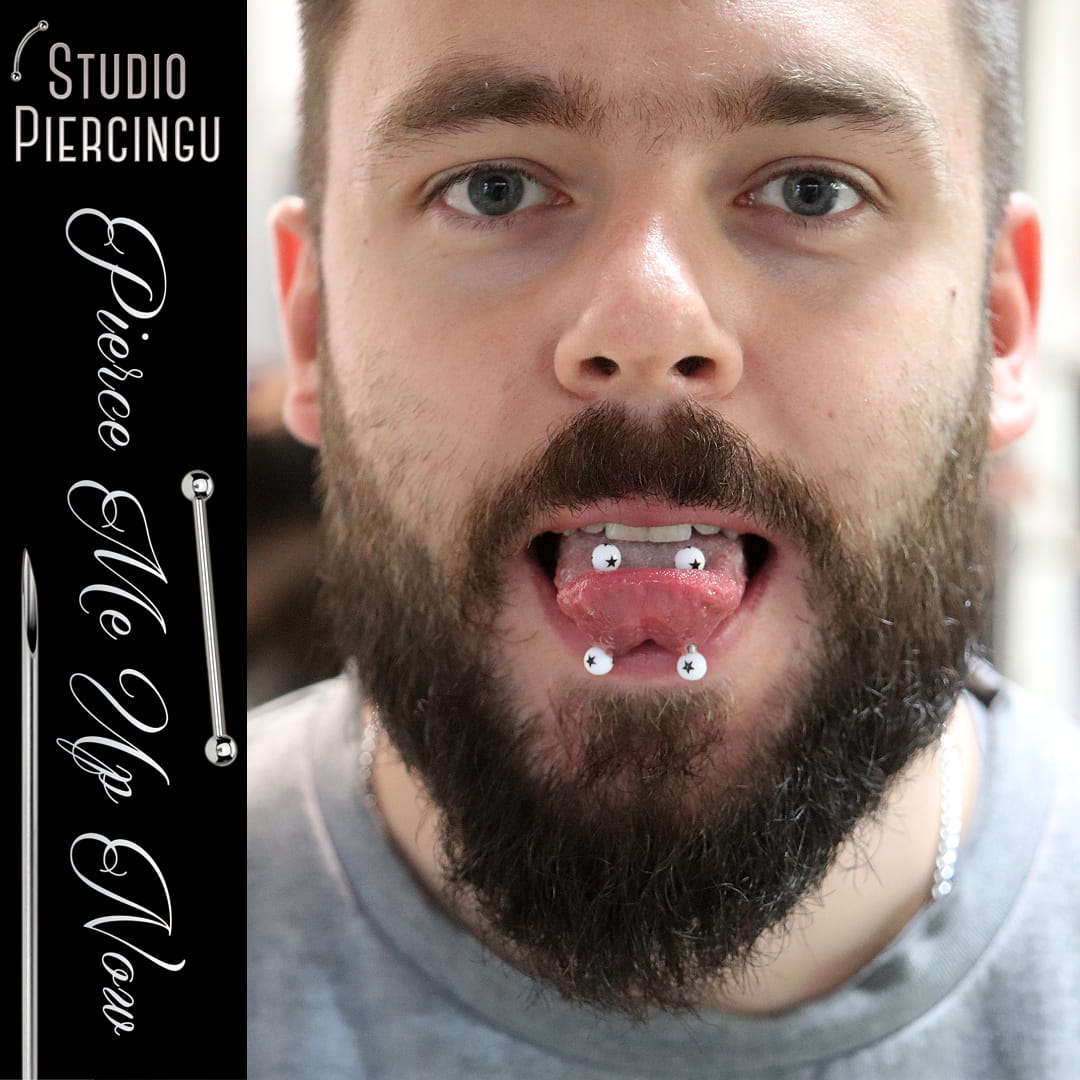 KOLCZYK DO JĘZYKA W CZARNE GWIAZDKI