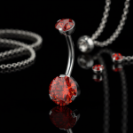 Kolczyk do pępka z dwoma dużymi czerwonymi cyrkoniami