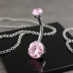 Kolczyk do pępka z pudrowo-różowymi cyrkoniami kubicznymi