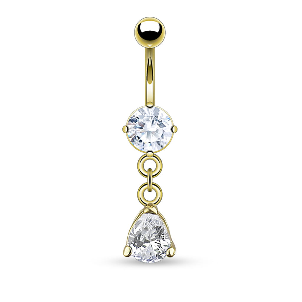 Kolczyk do pępka ze złotą kryształową łezką