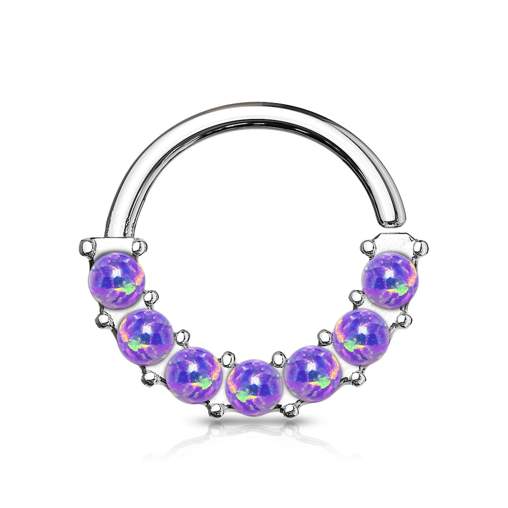 Rozginane kółeczko z 7 fioletowymi opalami.