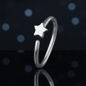Minimalistyczne, a zarazem wyjątkowe – rozginane kółeczko do nostrila z uroczą gwiazdką to delikatny akcent, który doda Twojemu wyglądowi subtelnego blasku.