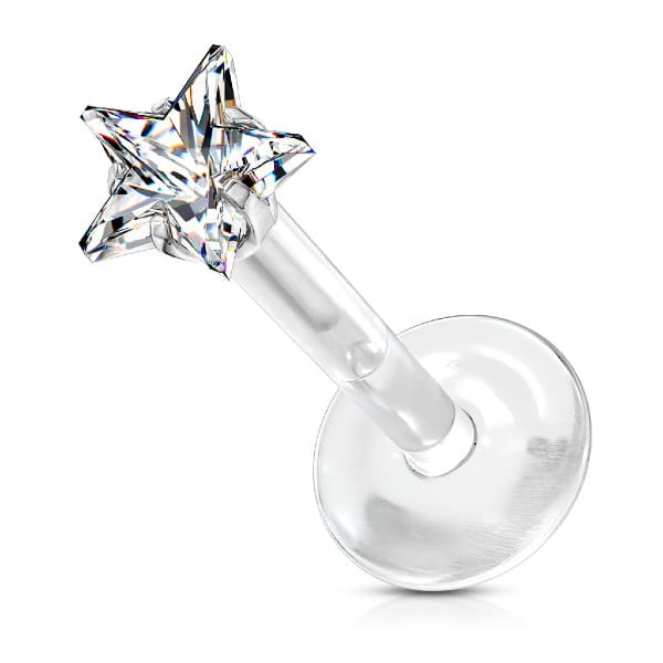 Przezroczysty labret z elastycznego bioflexu z cyrkoniową gwiazdką.