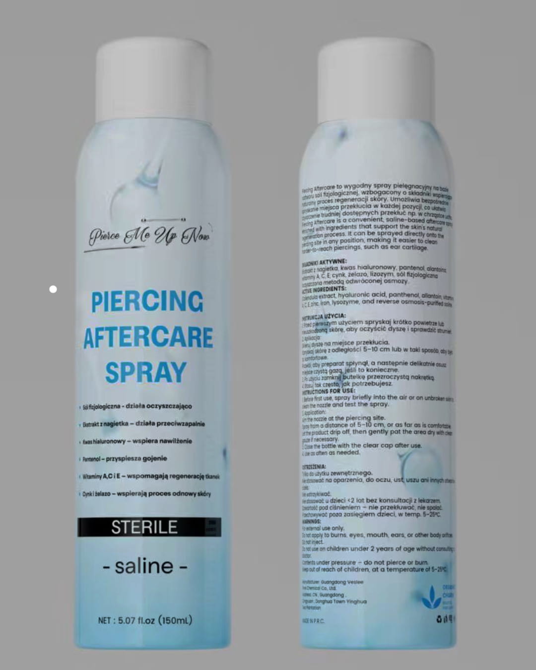 Profesjonalny spray do higieny i pielęgnacji piercingu, stworzony z myślą o bezpiecznym wspieraniu procesu gojenia skóry po przekłuciu. Formuła bazuje na jałowej soli fizjologicznej przygotowanej z wody oczyszczonej metodą odwróconej osmozy i przefiltrowanej sterylizującym filtrem 0,22 µm, dzięki czemu preparat jest całkowicie bezpieczny dla świeżych i zagojonych przekłuć.