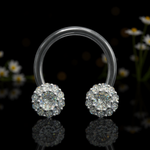 Podkówka wykonana ze stali chirurgicznej 316l, dyski z mosiądzu, z powłoką rodu.