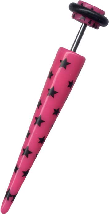Różowy fake taper z o-ringiem w czarne gwizdki, który imituje rozpychacz w rozmiarze 6 mm. Pręcik wykonany ze stali chirurgicznej, zakrętki akrylowe.