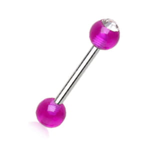 Sztanga ze stali chirurgicznej 316 l z akrylowymi kuleczkami. Jedna z kuleczek z białą cyrkonia.