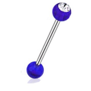 Stalowa sztanga z niebieskimi akrylowymi kulkami z kryształkiem.