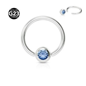 Kółeczko CBR z wysokiej jakości tytanu chirurgicznego G23 z błękitnym kryształkiem. Kolczyki z tytanu chirurgicznego g23 są polecane w szczególności na świeże przekłucie oraz dla osób uczulonych na nikiel.