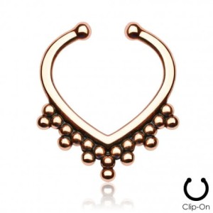 Oszukany septum w kolorze różowego złota z malutkimi kuleczkami.