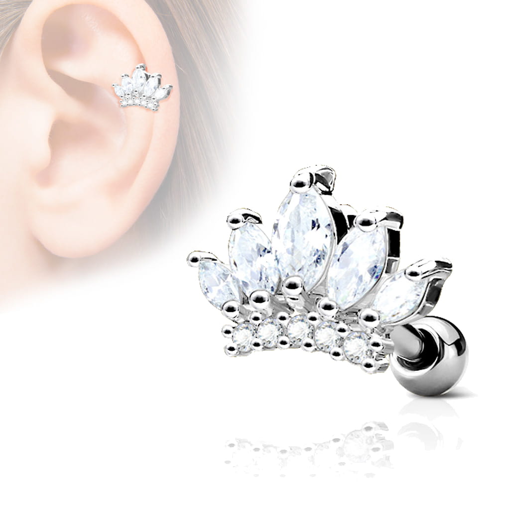 Sztanga z przepięknie zdobiona tiarą z 5 większymi kryształami o szlifie markizy i pięcioma drobnymi kryształkami o szlifie brylantowym. Całość zaprojektowana z niezwykłą dbałością o detale.