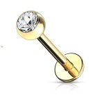 Klasyczny złoty labret z białym kryształkiem (PVD)