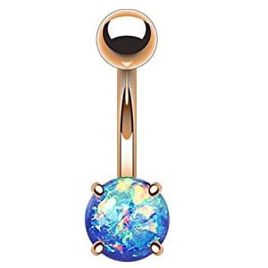 Kolczyk do pępka w kolorze różowego złota z niebieskim opalem
