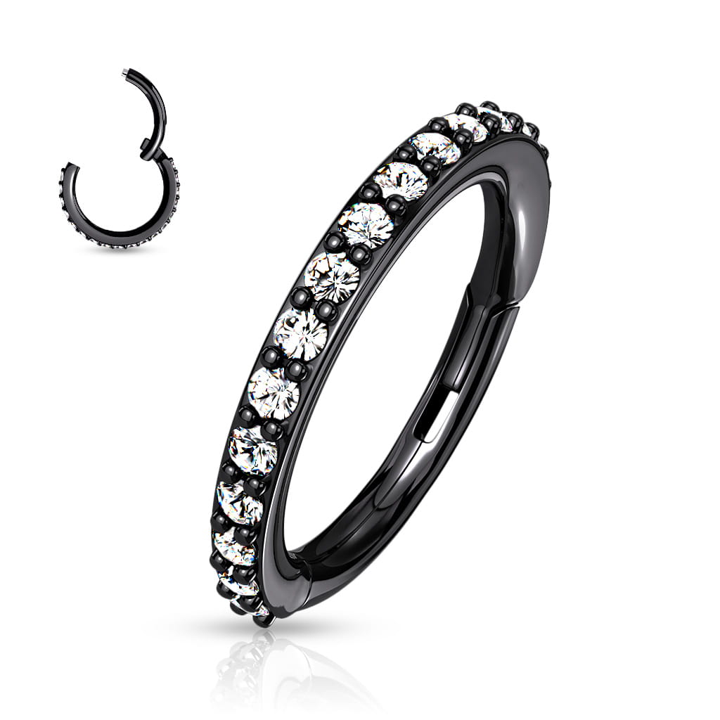 Czarny clicker wysadzany białymi kryształkami.