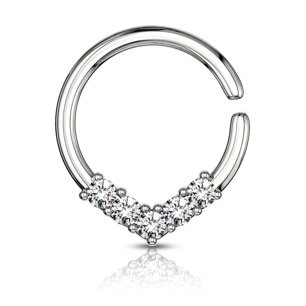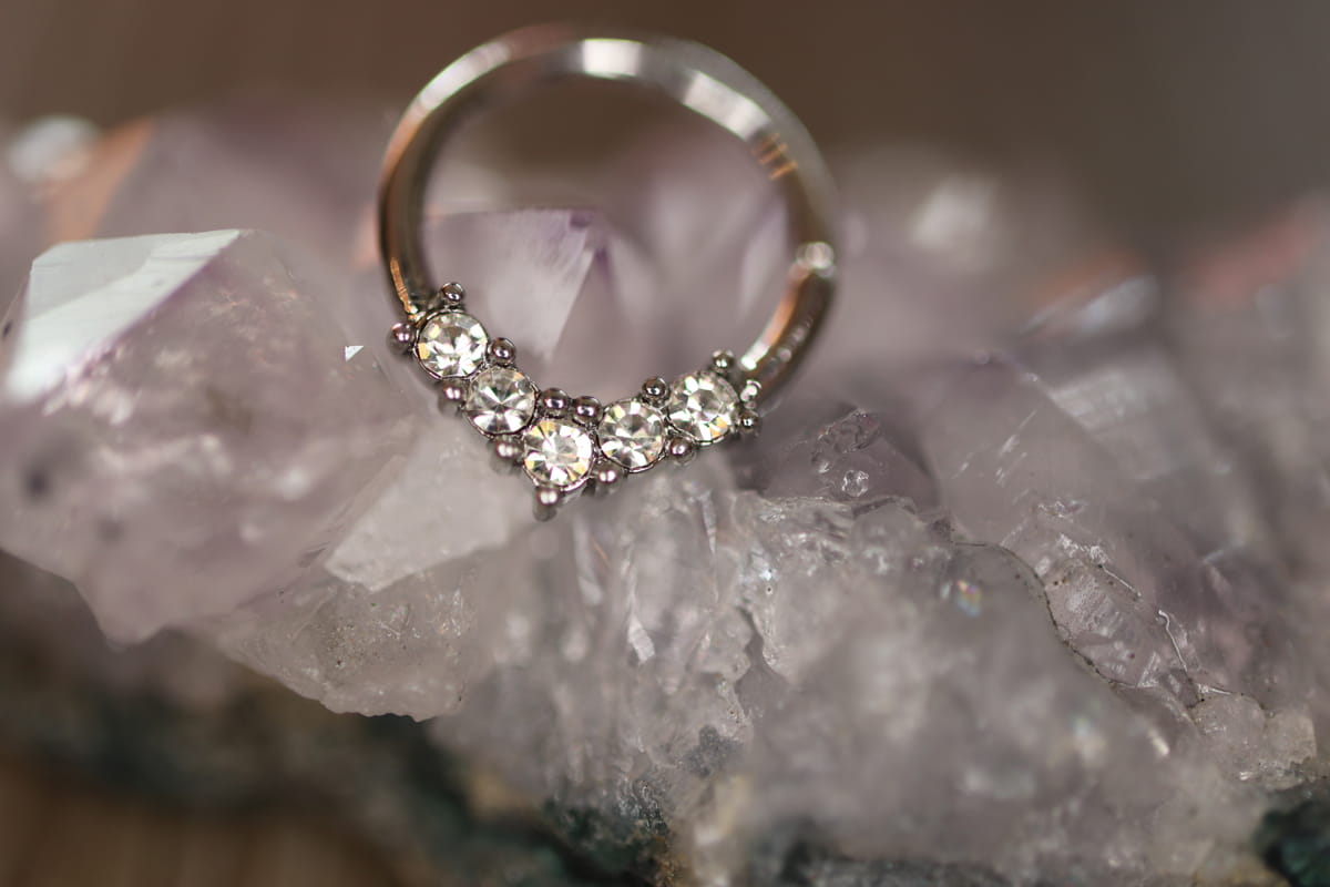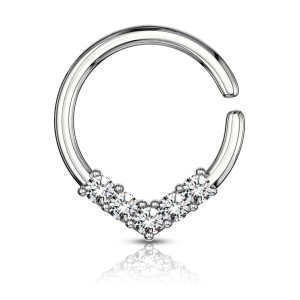 Kółeczko w kształcie v z białymi kryształkami.