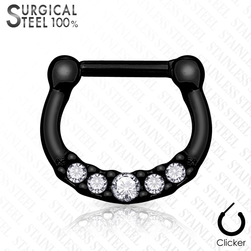 Ten clicker najlepiej prezentuje się w piercingu typu septum, jednak możesz nosić go również w płatku ucha oraz w przekłuciu Daith.