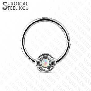 Rozginane kółeczko z białym opalem otoczone spiralą.