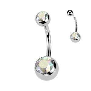Kolczyk do pępka z opalizującymi kryształkami z tytanu chirurgicznego G23.