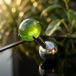 Sztaga z zieloną cyrkonią o szlifie gładkim , kaboszonowym. Szlif ten nie posiada ścianek, ani ostrych krawędzi. Jest idealnie gładki, o zaokrąglonych ściankach.