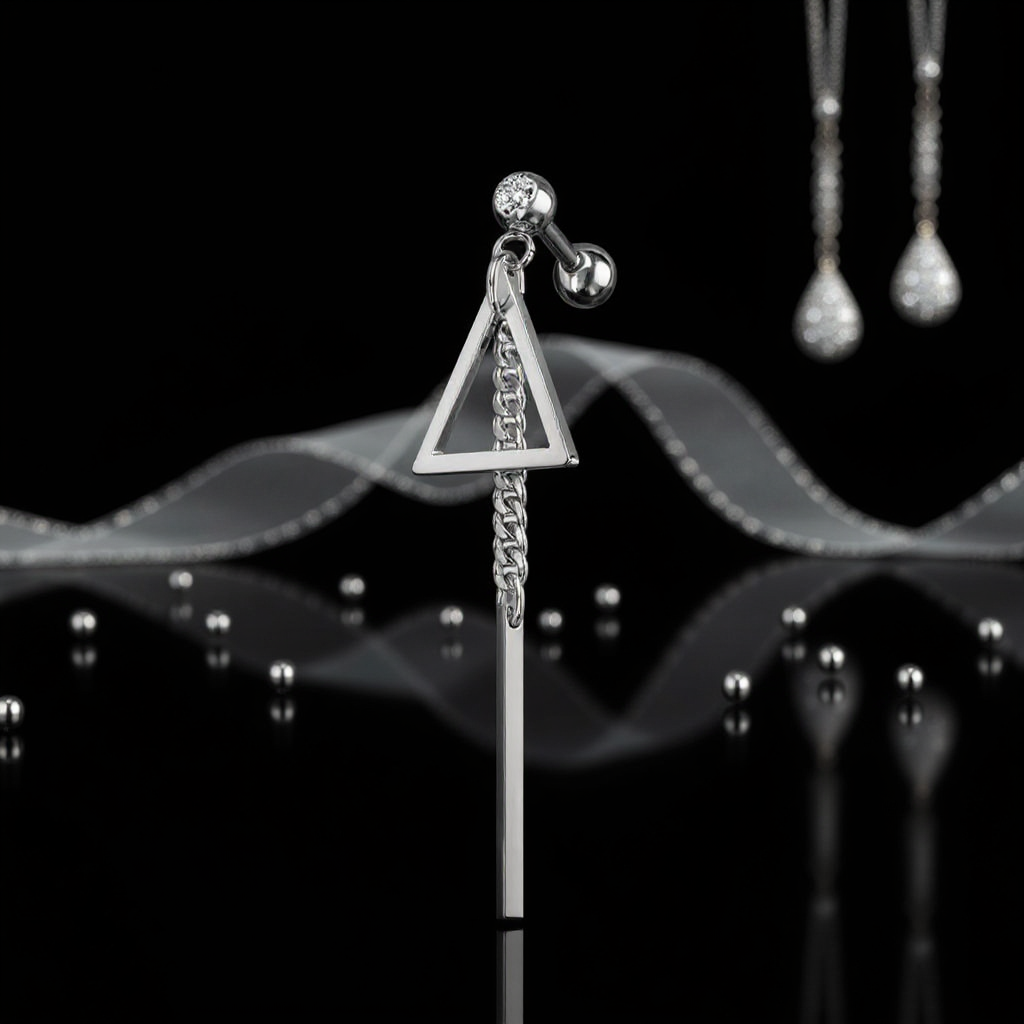 Srebrna sztanga do ucha z zawieszką Triangle Dangle