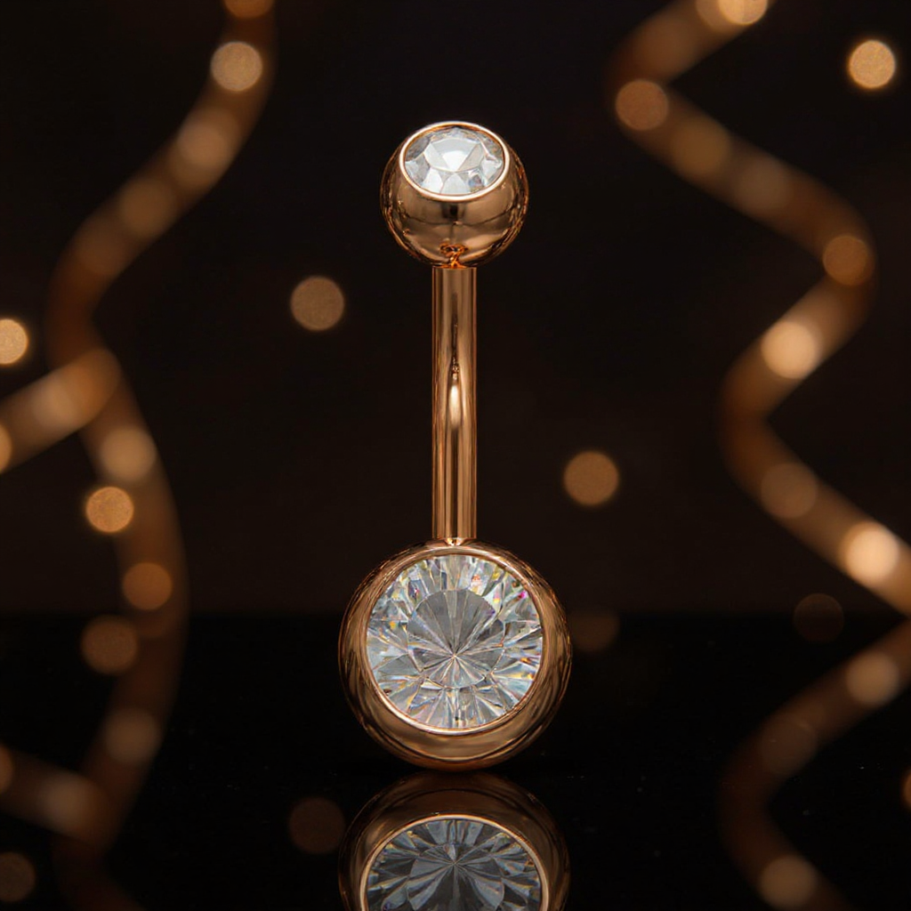 Idealny dla fanek minimalizmu z nutą luksusu – kolczyk do pępka rose gold łączy medyczną jakość z estetyką, która przyciąga wzrok.