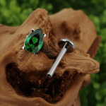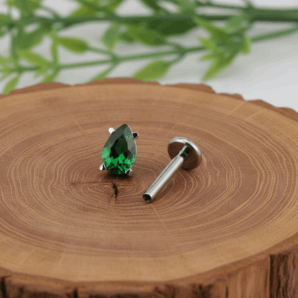 Labret „Emerald Pear” – tytan ASTM F-136, zielona cyrkonia w kształcie gruszki