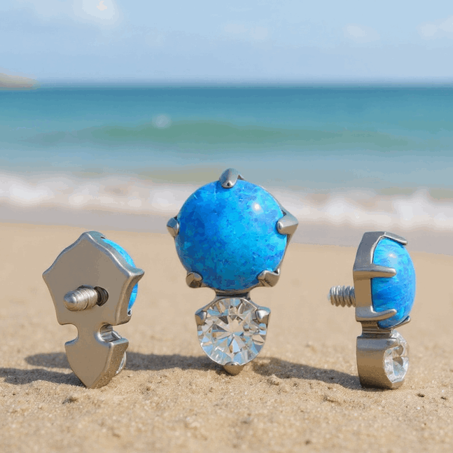 Delikatny i pełen uroku labret, którego ozdobą jest syntetyczny opal w kształcie serca. Kamień zachwyca niezwykłą grą barw – od głębokiego błękitu, przez turkus, aż po świetliste akcenty zieleni. Każdy ruch wydobywa z niego nowe refleksy, dzięki czemu biżuteria mieni się i hipnotyzuje niczym miniaturowy klejnot natury.
