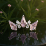 Ozdoba: 7 elementów – 3 różowe cyrkonie w kształcie rombu + 4 drobne białe cyrkonie okrągłe