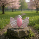 Kamienie: 1 różowy syntetyczny opal (środek) + 2 różowe cyrkonie kubiczne (boki)