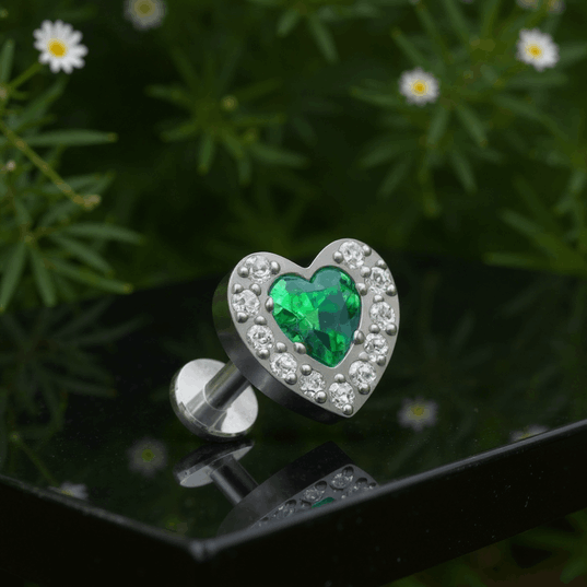 Tytanowy labret zielone serce