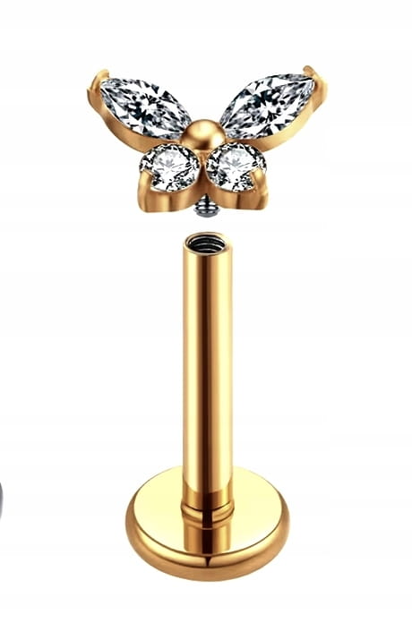 Ten uroczy kolczyk w formie motyla to połączenie lekkości natury z trwałością nowoczesnych materiałów. Wykonany z tytanu G23 – jednego z najbardziej cenionych metali w piercingu – gwarantuje hipoalergiczność, lekkość oraz pełną odporność na korozję.