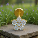 Subtelny i pełen klasy labret, w którym elegancja spotyka się z delikatnym zdobieniem. W centrum kompozycji znajduje się biała cyrkonia w klasycznym, okrągłym szlifie – osadzona tak, aby pięknie odbijała światło i mieniła się niczym maleńki diament. Kamień otacza misterna ramka z drobnych, złotych kuleczek, które dodają całości lekkości i wyjątkowego uroku.