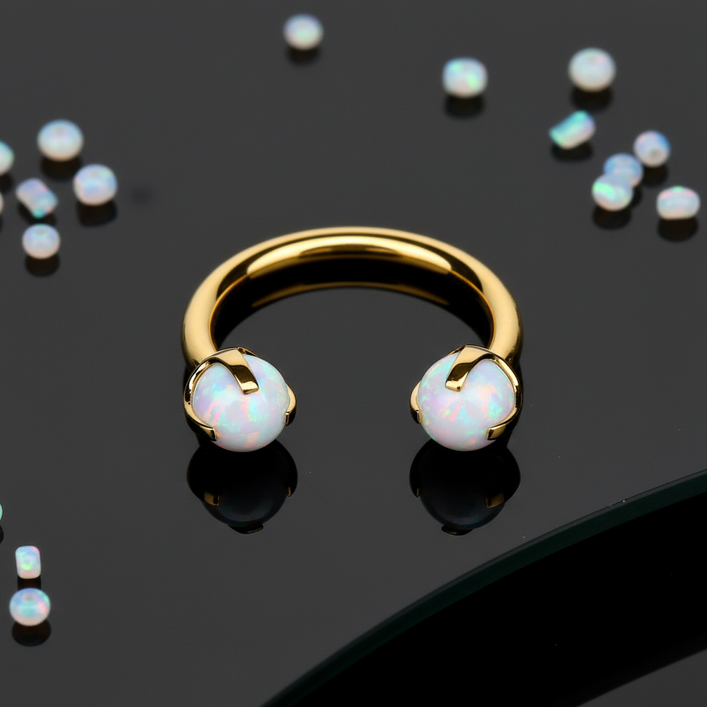 ✨ Białe opale, które zdobią podkówkę, nadają biżuterii subtelny, a jednocześnie zjawiskowy blask, który przyciąga wzrok. Opale charakteryzują się naturalną grą świateł, co sprawia, że stają się one wyjątkowym akcentem w każdej stylizacji.