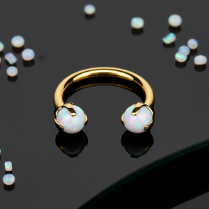 Złota podkówka z białymi opalami