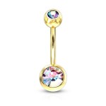 Kolczyk do pępka w kolorze złota z opalizującymi kryształkami Aurora Borealis.